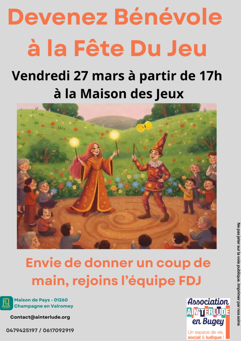 Devenez bénévole à notre Fête du Jeu 2026 Rencontre le vendredi 27 mars à partir de 17h à la Maison de Jeux …