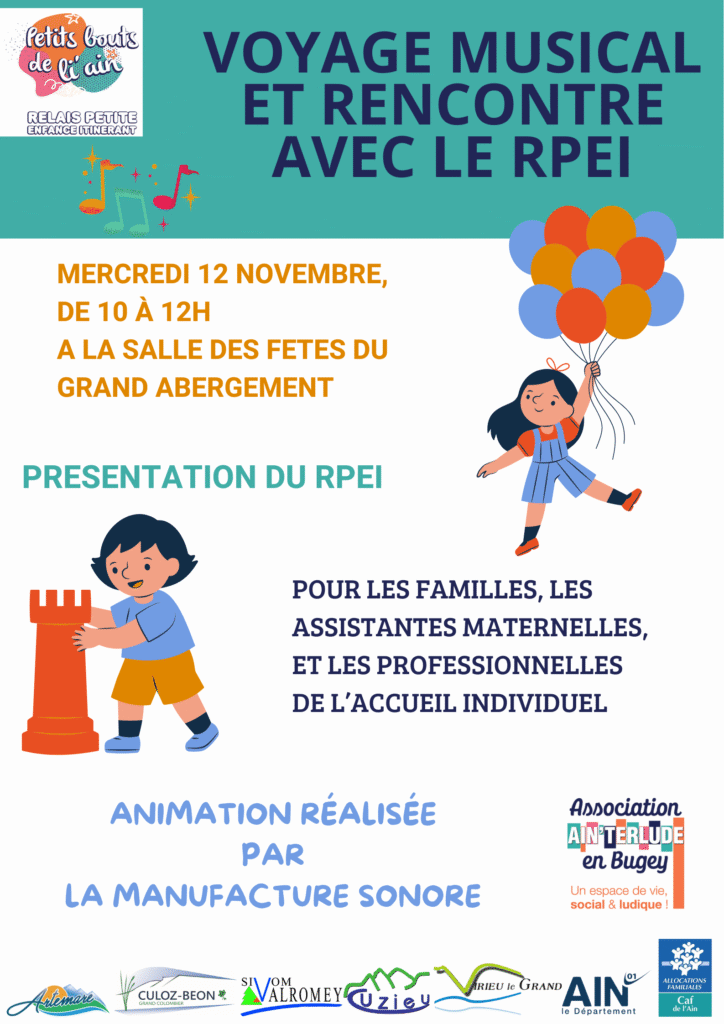 ATC spécifiques familles de Virieu le Grand Ponctuellement le Relais Petite Enfance Itinérant et les Assistantes Maternelles ouvrent les portes des accueils de Temps Collectifs aux parents. N’hésitez pas à venir partager un temps de jeux et de convivialité et découvrir les actions du Relais Petite Enfance Itinérant Petits Bouts de Li’Ain!