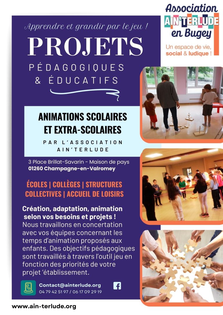 Exemples de projet : Le jeu à travers la coopération et la citoyenneté; jeux et patrimoine, jeux du monde, jeux de psychomotricité…