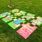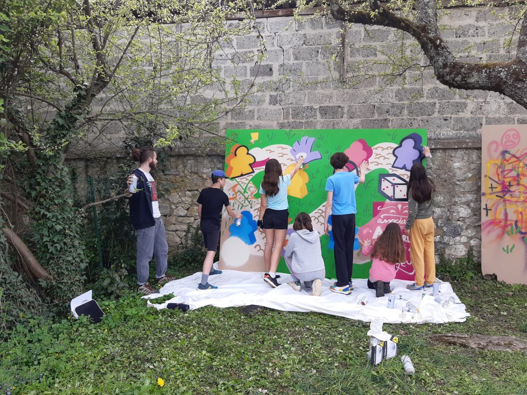 Le groupe ados s’est initié au graph et a crée un puzzle avec Marceau. Celui-ci a montré les techniques du graph aux ados. Ils ont choisi les dessins et ont imaginé les 20 ans sous forme de parcours de jeux. Le puzzle réalisé en amont de la fête du jeu, a été joué tout au long de la journée par le public. Lors des 20 ans, les ados ont graphé un transfo de la commune et ont montré leur talent de grapheur !